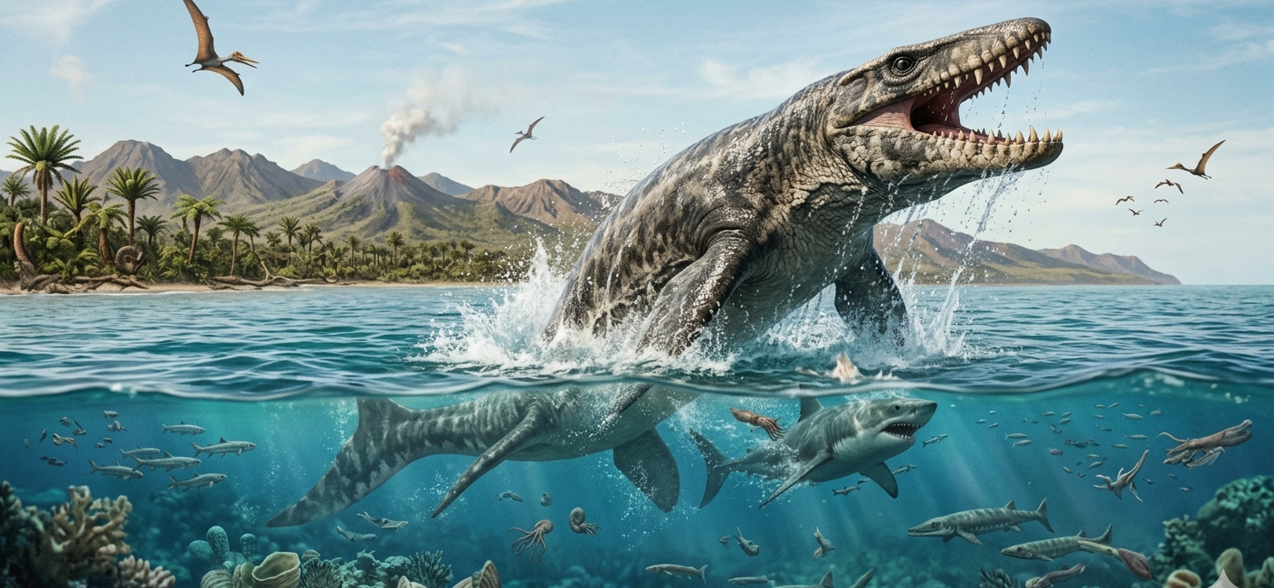 Los mosasaurios, reptiles marinos emparentados lejanamente con los actuales lagartos, experimentaron una explosión evolutiva poco antes de su extinción en el evento que marcó el fin de los dinosaurios, el Evento de extinción Cretácico-Paleógeno. Durante este periodo, perfeccionaron estrategias de caza que los posicionaron en la cima de la cadena alimenticia.