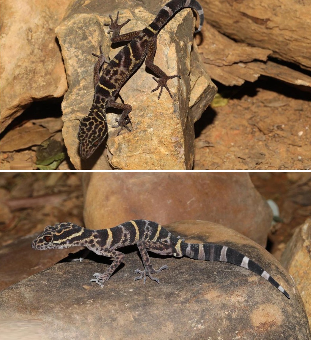 Este gecko de párpados, con un patrón de manchas negras sobre un fondo amarillo claro, parece un dragón en miniatura. Con 23 poros precloacales y una genética única, es el nuevo monarca de las rocas de Guangxi.